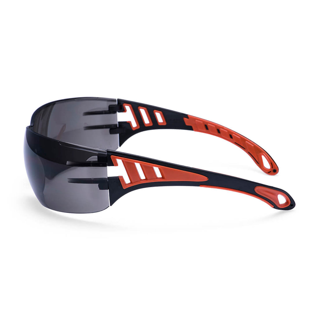 Innovative lightweight dielectric safety glasses with metal free hinges, featuring a tough and modern design with dual material on the side arms Side openings offer increased ventilation for optimum comfort